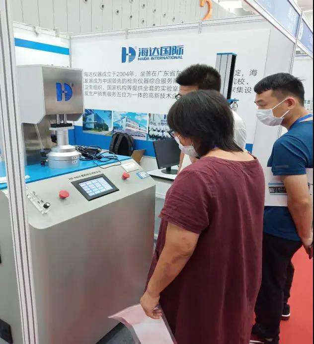 廣東海達(dá)儀器有限公司洞悉目前國(guó)內(nèi)和國(guó)外檢測(cè)設(shè)備行業(yè)市場(chǎng)現(xiàn)狀,針對(duì)檢測(cè)設(shè)備進(jìn)行研發(fā)。在本次展會(huì)上,海達(dá)展出了HD-K406口罩顆粒物過濾試驗(yàn)機(jī)、HD-B609B-S萬能拉力試驗(yàn)機(jī)、恒溫恒濕箱,得到了參展者的強(qiáng)烈興趣和廣泛關(guān)注。